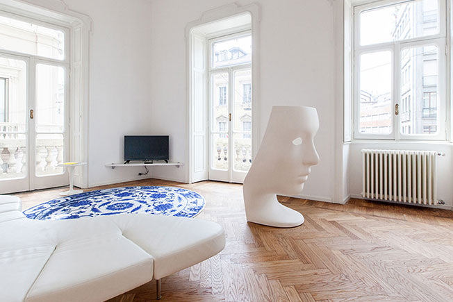 Эта квартира площадью 200 кв. метров расположена на втором этаже миланского палаццо. В 2015 году архитекторы студии Giorla & Trautmann Architectes восстановили интерьеры XIX века. Исторические детали здесь сочетаются с современными дизайнерскими предметами — например, белыми креслами Nemo Фабио Новембре.