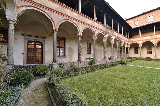 Квартира в районе Corso Magenta спрятана внутри монастыря XVI века, здание которого спроектировал архитектор эпохи Возрождения Донато Браманте. Пространство было не так давно отреставрировано, но по-прежнему сохраняет исторические детали — в нем можно обнаружить оригинальные каменные арки и резные дверные проемы.