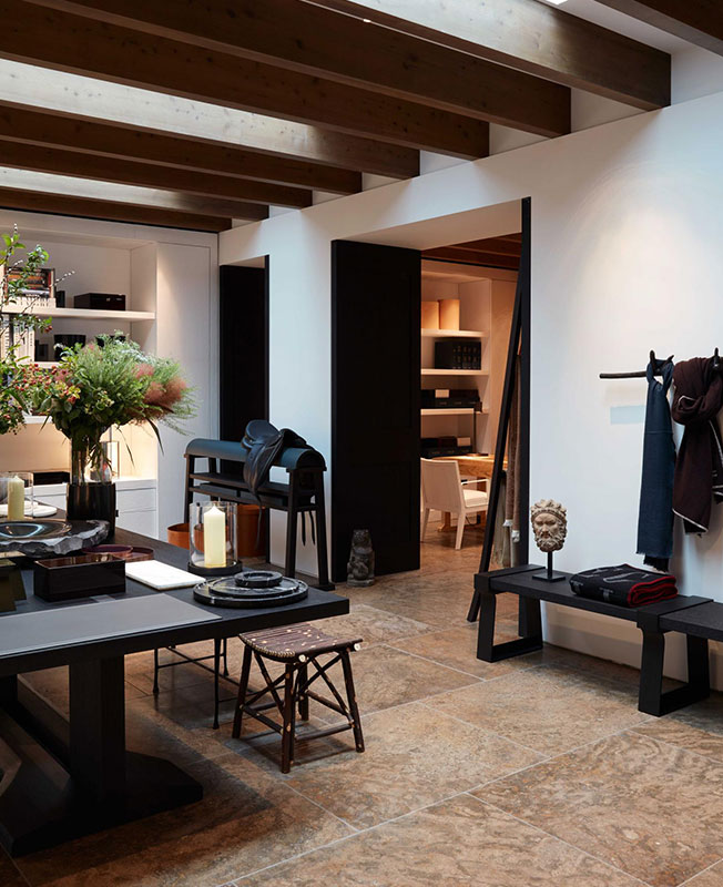 Новый шоу-рум демонстрирует все bespoke-возможности бренда. Канонические предметы дизайна, созданные гением минимализма, сочетаются с новыми творениями его студии. Здесь хочется жить: элегантные гостиные, эстетская столовая с темными брутальными витринами, плавно переходящая в террасу, просторная спальня, большая гардеробная, уютный кабинет... Есть даже место для проведения коктейлей с роскошной барной стойкой из итальянского черного мрамора.