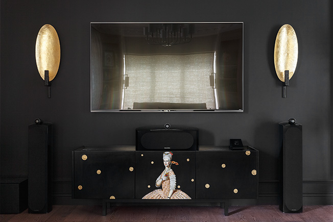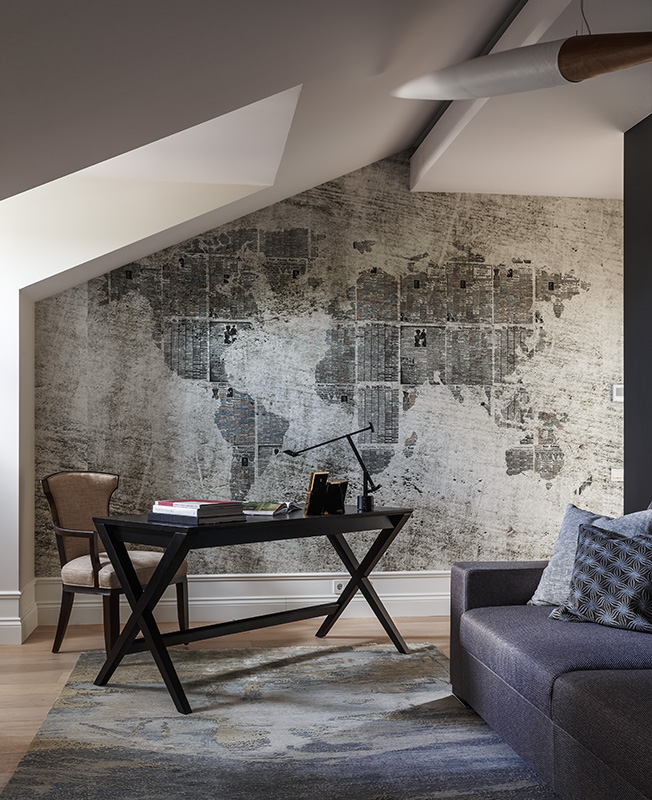 Высокий уровень проекта определяют натуральные материалы и мебель топовых марок, таких как Baker и Ralph Lauren Home. Есть и антиквариат, привезенный из разных стран, от Франции до Японии. Живым и актуальным интерьер делает современное искусство: живопись Алексея Ланцева, акварели Полины Егорушкиной. Особенно впечатляют работы Саши Гольдбергера. Этот фотограф прославился тем, что героев комиксов и блокбастеров изображает в духе старых фламандских мастеров (серия называется Super Flamish), а свою 90-летнюю бабушку — в образе Супермена (cерия Supermamika).