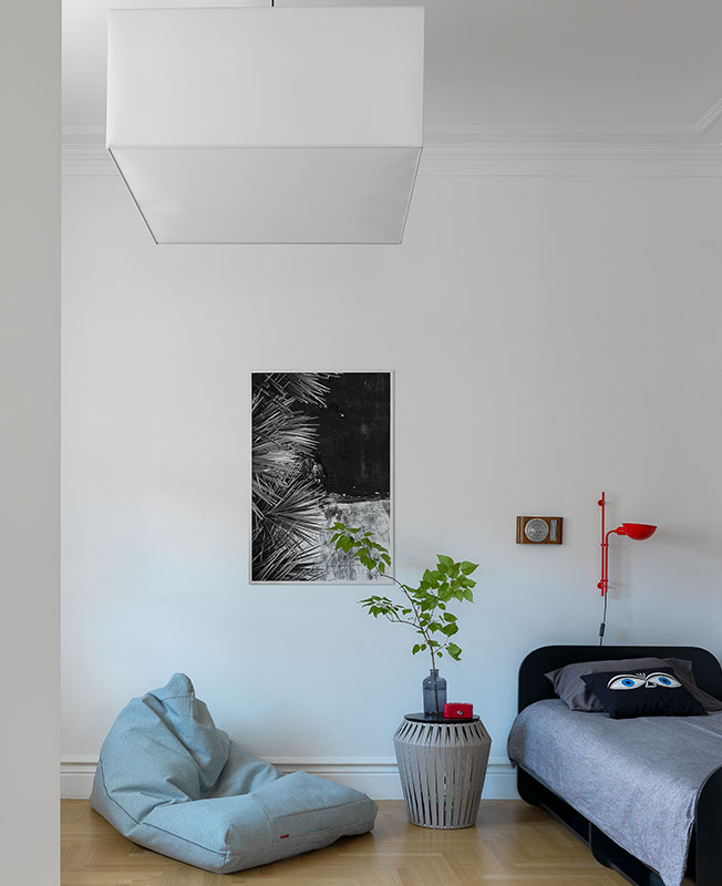 Дизайнер Ирина Налимова оформила в Минске квартиру для своих друзей, приверженцев здорового образа жизни и скандинавского дизайна. nonehttps://www.instagram.com/irina.design.interior/https://www.facebook.com/irina-nalimovacom-780536418663504/?fref=tswww.irina-nalimova.com Насмотренные люди с хорошим вкусом, заказчики много путешествуют, ведут активный образ жизни. Глава семьи Влад — владелец IT-бизнеса, его жена Ольга работает косметологом, но много времени уделяет семье. У пары двое сыновей, шести и тринадцати лет. Все мужчины, даже шестилетний Стас увлечены спортом: участвуют в соревнованиях по триатлону. В гостиной предусмотрена большая мягкая группа, ее центр — огромный пуф в кожаной обивке. Он служит сиденьем, лежанкой и столиком, годится и для взрослых посиделок, и для детских игр. Живут заказчики «на два города». В эстонской столице у них есть дом в престижном квартале, застроенном деревянными виллами. В Минске они приобрели недвижимость в сталинском доме 1952 года: отличную угловую квартиру площадью 185 кв. метров, с эркером и высокими потолками, 3,5 метра. Когда-то она принадлежала местной оперной диве, солистке национального Большого театра. Так что жилье, можно сказать, историческое. В центре мягкой зоны — пуф в кожаной обивке, изготовленный на заказ. Служит сиденьем, лежанкой, столиком. Дети прыгают на нем, как на батуте, поэтому подвесные лампы исключались. Плоскую люстру изготовил мастер по металлу. Торшер Flos. Несмотря на то, что заказчики давно дружат с Ириной, они поначалу не хотели приглашать ее на проект: опасались, что совместная работа повредит их дружбе. Поэтому обратились к другим дизайнерам. Однако отношения в ними не сложились. Последней каплей стала кухня: дорогую модель марки Scavolini доставили из Италии в венозно-красном цвете, который не был согласован с заказчиками. Ольга, мечтавшая об интерьере в спокойных, сложных, «скандинавских» цветах, пришла в ужас. И тогда семья обратилась к Ирине: «Выручай». Телевизор установлен на напольной подставке, которая зонирует интерьер, отделяет гостиную от столовой. При желании ТВ-конструкцию можно передвинуть. На стенах краска Benjamin Moore. «Когда я пришла на проект, планировка уже сложилась, — рассказывает Ирина Налимова. — Больше всего меня поразил тот факт, что кухню расположили в тесном помещении без окон. И это при том, что Ольга много готовит, радуя своих мужчин полезной едой из фермерских продуктов. Дизайнер оставила открытыми проемы между кухней и гостиной, благодаря чему в кухню проникает дневной свет, а хозяйка не изолирована от семьи во время готовки. Табуреты Magis. Кухня оснащена на профессиональном уровне. Холодильник Liebherr, варочная поверхность и вытяжка Smeg, Серо-голубой цвет фасадов, ламинат под дерево на потолке, напольное покрытие серого цвета приглушают активный цвет кухни Scavolini. Кухонный фартук отделан плиткой Vives. Вытяжка Smeg. На стене работа художника Владимира Грамовича. Нам удалось скорректировать планировку: два проема, соединяющие кухню с гостиной, мы оставили открытыми. Из хорошо освещенной гостиной с эркером в кухню попадает дневной свет, к тому же Ольга не чувствует себя изолированной, занимаясь готовкой». Вид из кухни в гостиную. Дизайнер оставила два проема открытыми, отказавшись от дверей, благодаря чему кухня стала частью общего пространства. На стене работа Марины Бланке. Много внимания уделили техническому о
