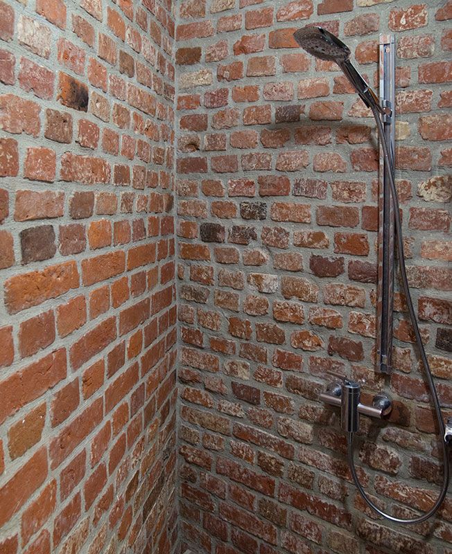 В процессе работ стены были полностью очищены от поздних наслоений, в результате чего открылась старая кирпичная кладка. Она настолько всех восхитила, что ее решили сохранить. На некоторых кирпичах хорошо видны клейма «В. К. Шапошников, М. В. Челноков и Ко» — так называлось товарищество для производства и продажи строительных материалов, владевшее среди прочего двумя кирпичными заводами. Реставрацией и ручной обработкой кирпичных стен занимались специалисты из «Мастерских Братьев немцеВ».