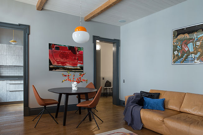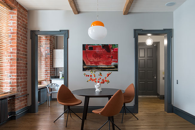 Европейский винтаж как нельзя лучше подошел исторической квартире. Дмитрий Кузнецов и Наталья Воробьева использовали итальянский винтажный свет от своего постоянного партнера, галереи 20th Century Lamps. Работы художников из pARTnerproject Gallery привнесли модные ноты и современный настрой.