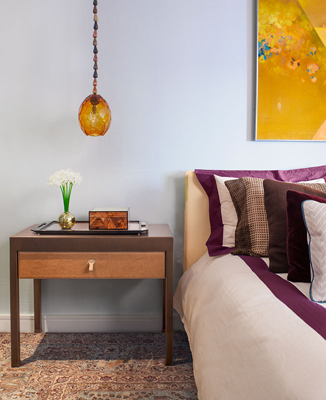 Николь Фуллер, Nicole Fuller Interiors, получила от заказчика карт-бланш и создала красочный интерьер в нью-йоркском районе Трайбека. Гостиная-столовая. Обеденный стол Promemoria. Стулья, диз. Маттиа Бонетти. Люстра Lindsey Adelman. Диван de Sede. Винтажное черное кресло Wyeth. Кресло и кофейный столик, диз. Маттиа Бонетти. Торшер, диз. Эрве ван дер Стратен. Ковер Tai Ping. Чтобы пространство на сто процентов соответствовало замыслу дизайнера, от старой планировки и отделки полностью избавились. Многие элементы в интерьере, включая настенные покрытия в каждой комнате и мозаику в оттенке белого золота в хозяйской ванной, были созданы на заказ. Гостиная. Диван de Sede. Винтажное черное кресло Wyeth. Кресло и кофейный столик, диз. Маттиа Бонетти. Торшер, диз. Эрве ван дер Стратен. Ковер Tai Ping. Вид на столовую из холла. Обеденный стол Promemoria. Стулья, диз. Маттиа Бонетти. Люстра Lindsey Adelman. Прихожая. Полка Nicole Fuller Collections. Круглое зеркало BDDW. Арт — Томас Макнайт. Столовая. Обеденный стол Promemoria. Стулья, диз. Маттиа Бонетти. Люстра Lindsey Adelman. Бра, диз. Патрик Наггар. Столик-пьедестал, диз. Пол Эванс. Арт — Джеральд Джонсон. Спокойная палитра служит фоном для эффектной мебели и аксессуаров: винтажных находок музейного качества, ценных лотов с аукциона Philips, предметов по дизайну Ральфа Пуччи, светильников Линдси Эйдельман и Сержа Муя, а также произведений современного искусства. Вид на кухню из зоны гостиной. Диван de Sede. Кресло и кофейный столик, диз. Маттиа Бонетти. Кухонный фартук и отделка стены из оникса. Столешница — патинированная латунь и смола. Вазы End of History. Фрагмент кухни. Отделка стены из оникса. Столешница — патинированная латунь и смола. Вазы End of History. Кабинет. Стол Promemoria. Стул, диз. Жак Гийон. Стеллаж, диз. Пьеро Лиссони. Фрагмент кабинета. Стеллаж, диз. Пьеро Лиссони. Фрагмент кабинета. Светильник, диз. Серж Муй. Арт — Нина Балабан. Спальня. Прикроватные тумбы Promemoria. Полки WUD furniture. Торшер Lindsey Adelman. Подвесные светильники, диз. Дэвид Вайсман. Постельное белье Olatz. Арт — Лео Мансо, Томас Дайвер. Спальня. Прикроватные тумбы Promemoria. Полки WUD furniture. Торшер Lindsey Adelman. Подвесные светильники, диз. Дэвид Вайсман. Постельное белье Olatz. Арт — Лео Мансо, Томас Дайвер. Спальня. Прикроватная тумба Promemoria. Подвесной светильник, диз. Дэвид Вайсман. Постельное белье Olatz. Фрагмент спальни. Ванная комната. Мозаика Bisazza. Арт — Марко Кроче.