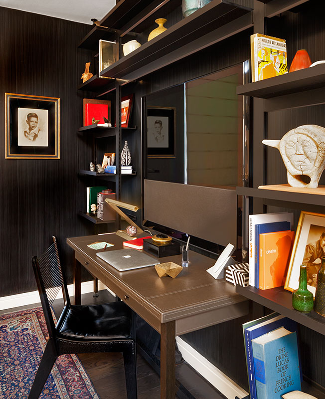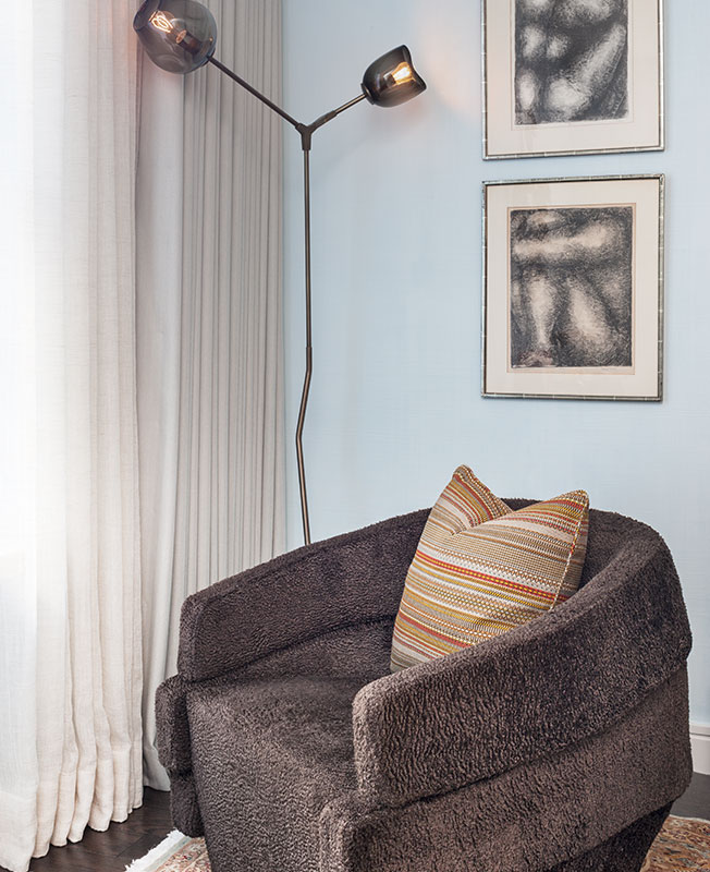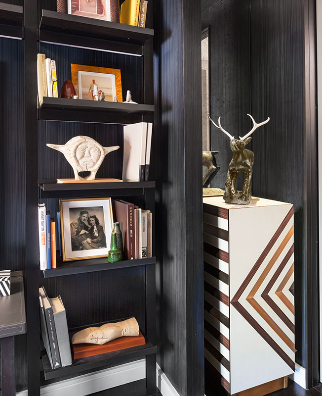 Спокойная палитра служит фоном для эффектной мебели и аксессуаров: винтажных находок музейного качества, ценных лотов с аукциона Philips, предметов по дизайну Ральфа Пуччи, светильников Линдси Эйдельман и Сержа Муя, а также произведений современного искусства.