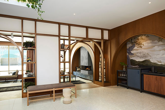 Интерьеры студии Mason Studio простые и комфортные: в главной гостиной обустроены камин, мягкие диваны и уютное освещение. Отель наполнен коллекционными предметами дизайна и книгами, пространство разделено деревянными арками.