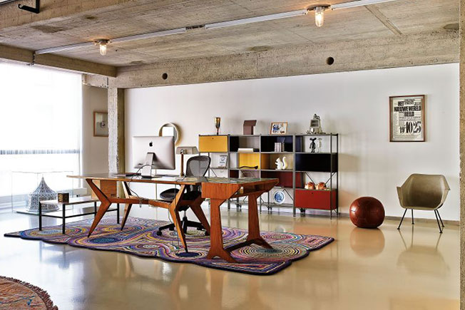 У дизайнеров ясный подход к жилью: уважай исходные данные — архитектуру — и не вкладывайся сильно в оболочку. Чтобы в любой момент можно было сняться с места и переместиться. Поэтому главное здесь не отделки, а наполнение. Брутальный лофт наполнен шедеврами дизайна, отчего выглядит как модная галерея.