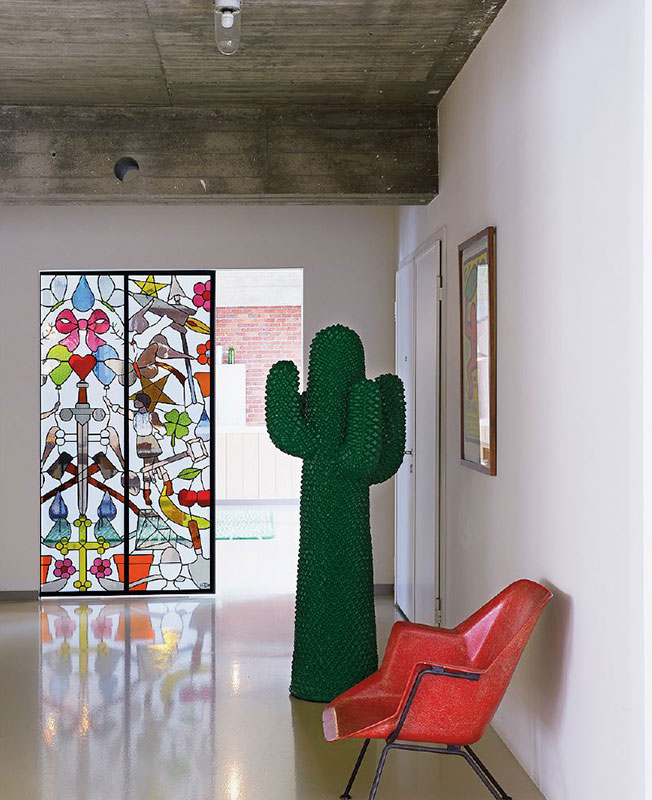 Ширма дизайна Нинке отделяет рабочую зону от жилой. Perchero Cactus — вешалка-скульптура от Gufram, 1970-е.