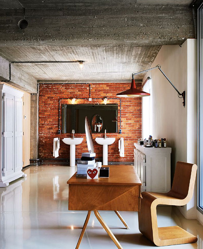 Огромные помещения с высокими потолками на двух этажах складываются в 1100 квадратных метров, а еще есть сад на крыше прилегающего гаража, как говорят хозяева, самый большой в городе оазис над землей. При этом здесь всего одна спальня — больше не требуется. «Встали с утра пораньше, сделали зарядку — и за работу». Талант в сочетании с трудолюбием приносит плоды.