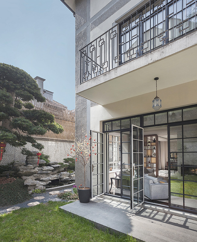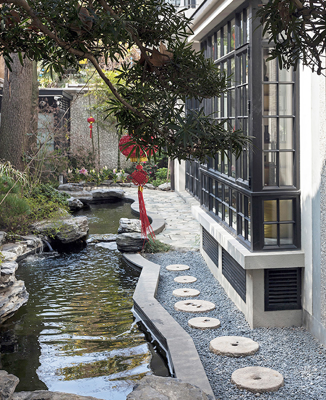 Сердцем виллы стал традиционный китайский сад: он полностью закрыт и защищен от посторонних взглядов, но при этом все пространства дома открыты к нему. Сад был разработан в сотрудничестве с экспертом по фэн-шуй, чтобы уважительно отнестись к строгим правилам оформления подобных пространств.