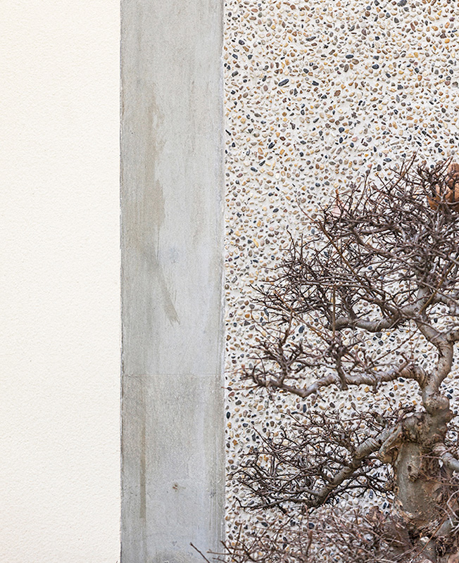 При реализации фасада провели тщательный анализ материалов, используемых в Шанхае в 1920-х годах. Отсюда типичные для того времени сочетание светло-желтого мрамора, речной гальки и серого камня. Внешняя структура здания была полностью переделана. Появились верхний этаж и большие окна: знаковый элемент, подчеркивающий взаимосвязь внутреннего и внешнего.