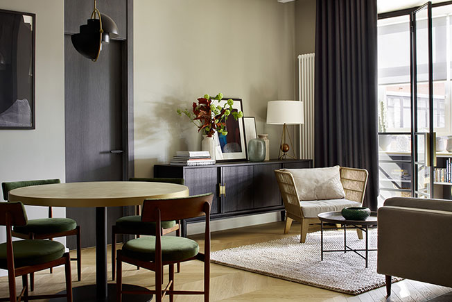 Комод от компании Dantone Home из коллекции City очень нравится хозяйке квартиры. Принт: Берит Могенсен Лопес. На стенах краска Little Greene.