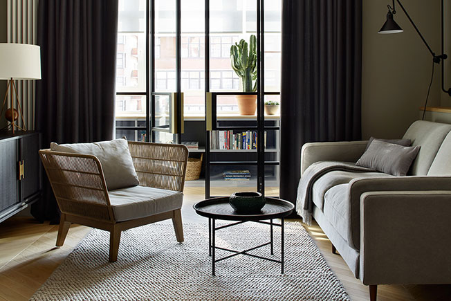 «Квартиру площадью 88 кв. метров мы создавали для молодой заказчицы, энергичной и стильной. Наталья работает в области гостиничного бизнеса и воспитывает сына Олега, они проводят много времени вместе: путешествуют, принимают участие в семейных спортивных соревнованиях. Среди хобби Натальи — вейкбординг. В дизайне Наталья ценит лаконичность и умеренную строгость, поэтому стилистика нашей студии пришлась ей по душе. А также наш подход к организации работ, комплектации и авторскому надзору.