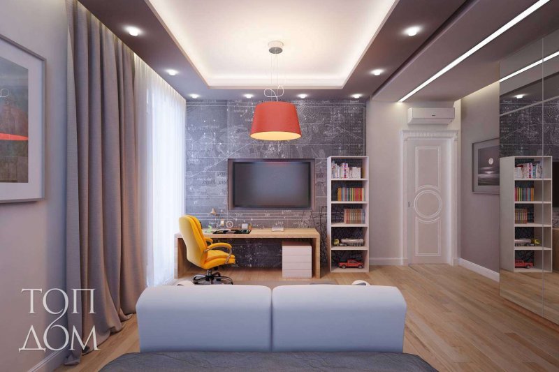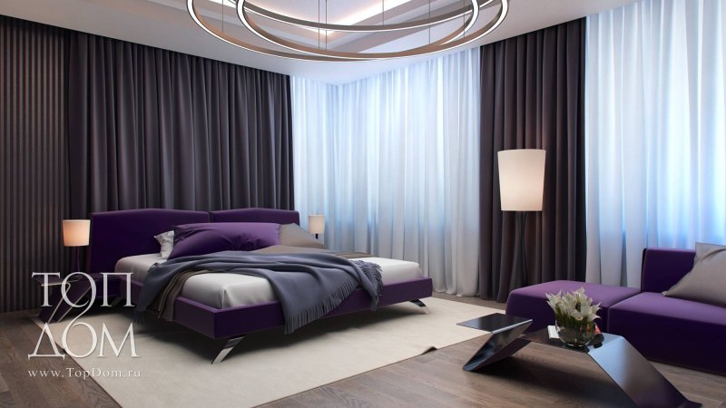 Для зонирования пространства используются подиумы, легкие раздвижные перегородки, ширмы. В большой спальне отдельное место выделяют для гардеробной, рабочего кабинета, санузла.