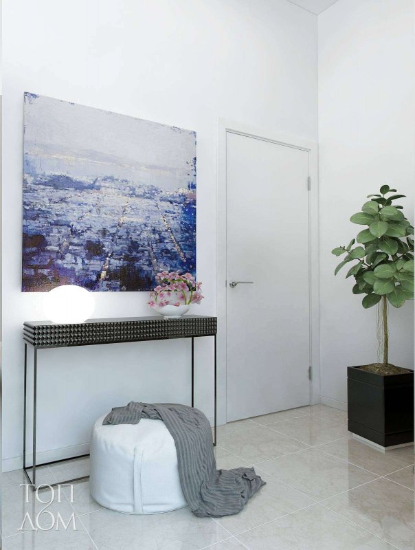 Сдержанность декора прописана стилем, именно поэтому роль украшения берет на себя мебель. Например, вешалка оригинальной формы или пуф яркого цвета.