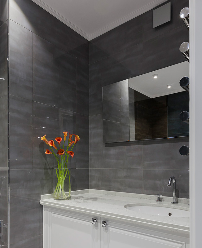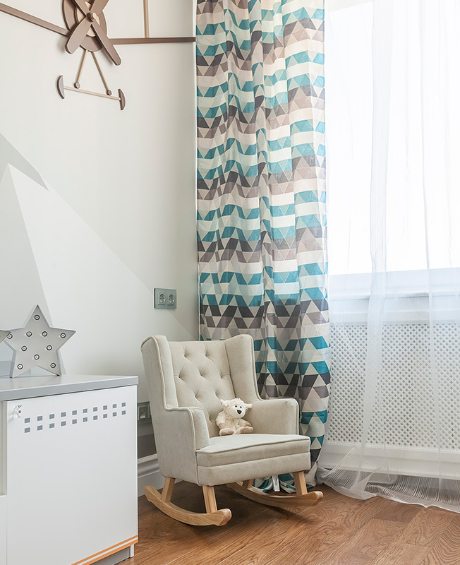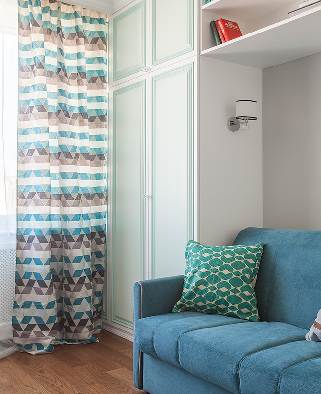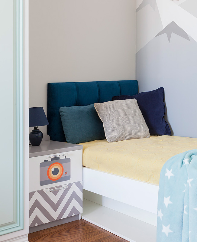 В данном проекте мне особенно нравится цветовая гамма и сочетание всех предметов мебели в детской. Использовались пастельные цвета, удалось обойтись без синего, но при этом с полной уверенностью можно сказать, что это комната для мальчика». По словам Евгении, первым пожеланием заказчиков было «только не серое». «Забавно вышло, но при выборе плитки, краски, текстиля, мебели мы все равно возвращались в серую цветовую гамму... а что получилось — видно по фото, — смеется дизайнер. — Мы каждый раз с заказчиками вспоминали и шутили на эту тему».