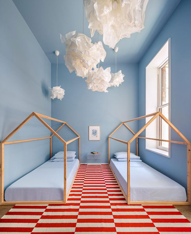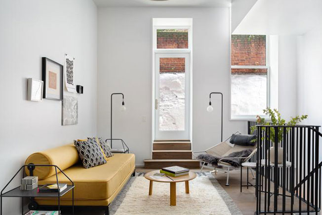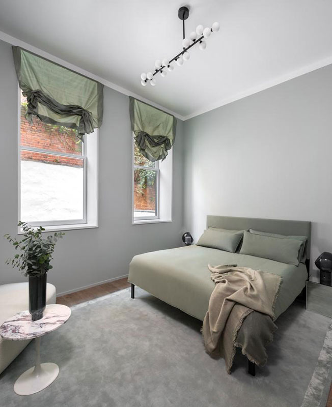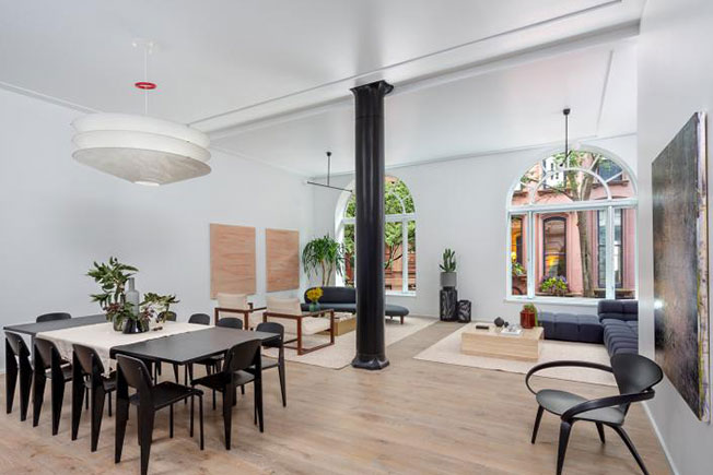 Жилой дом в Бруклине по адресу 171 Columbia Heights был построен в 1903-году. Архитектурные детали довоенного стиля — огромные арочные окна и классическую отделку — девелоперы DDG и Westbrook Partners сохранили при его реконструкции, превратив 12-ти этажный дом в роскошный кондоминимум. Модельное жилье в духе старого Нью-Йорка создала студия Atelier Armbruster. Концепция семейного танхауса отразила утонченность стиля через классические образцы дизайна. Двухуровневая квартира с отдельным входом занимает 400 кв. метров площади и включает четыре спальни, четыре ванные комнаты. Высота потолков достигает 3,7 метра, есть и собственный сад (73 кв. метра). В интерьере — микс дорогих и стандартных предметов. На фоне нейтральной цветовой палитры авторы разместили яркие вещи от Hay и Ikea, обеспечив таким образом функциональную базу интерьера. Эстетику дизайнеры привнесли с помощью объектов знаменитых модернистов: диван Исаму Ногучи, журнальный столик из травертина Пола Мак-Кобба, кресло Flag Ханса Вегнера. Завершили образ парадной части абстрактные полотна американского художника Пола Майкла Грейвса.