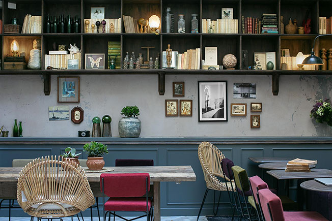 Эклектичный La Planque предлагает оценить разнообразие парижского предложения винтажа (собрания мебели с блошиных рынков). Акцент сделан, как это любят Дафна и Доротея, на коллекции старых зеркал в обновленных рамах и ретро-фотографиях.