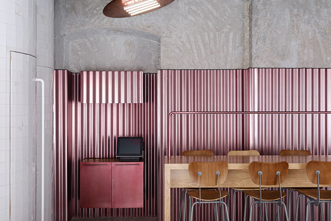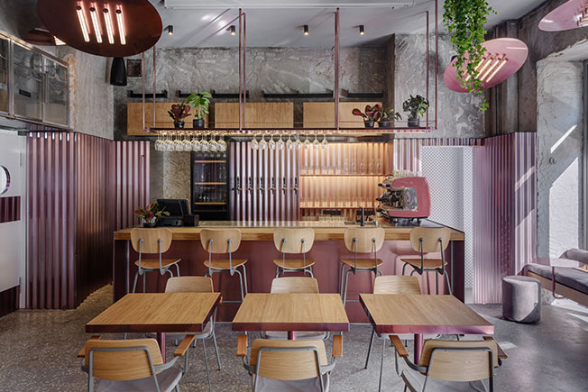 Новейший проект Crosby Studios — столичный ресторан Rare («редкий», — в пер. с фр). Его автор, архитектор и дизайнер Гарри Нуриев, рассказал ИНТЕРЬЕР ДИЗАЙН о своей работе. «Ресторан Rare находится в одном из моих любимых районов, в Китай-Городе, в Милютенском переулке. Заказчики хотели нового смелого дизайна, какого ещё не было в Москве. Концепция сложилась легко. nonehttps://www.instagram.com/crosbystudios/?hl=rucrosbystudiosofficial/http://crosby-studios.com/ Пространство уже было разделено несущей стеной на два зала. Один мы отдали под посадку, а второй — под кухню. В общем зале помимо посадки я разместил бар и туалеты, которые убрал в цилиндрические объемы — они выглядят как скульптуры и визуально работают на общее пространство. Посадку мне хотелось сделать очень разной. Например, у нас есть и высокий общий стол, и длинная лавочка у окна с небольшими столиками, и традиционная посадка, и моя любимая часть — амфитеатр: туда можно забраться с едой на самый верх и наблюдать за всеми. В общей сложности в зале поместилось около 50 посадочных мест, притом что его площадь всего 54 кв. метра. Мои проекты нередко визуально контрастируют с назначением пространства. В данном случае мне хотелось создать ощущение двора, по типу тех, что есть в Venice в Лос-Анджелесе. Стендовые панели похожи на забор, а лампы — на обогреватель. В этом дворе всегда тепло, весело и вкусно. Ты чувствуешь себя раскованно, молодо и сексуально. Я использовал свой фирменный прием: пространство как будто не подвергалось никакому ремонту, а просто смонтировали панели на стены и поставили мебель. Но на самом деле, чтобы добиться такого эффекта, пришлось хорошо поработать. Самым сложным было разместить всё в одной комнате. Ресторан небольшой, при этом он получился многоплановым и интересным — не только с точки зрения кухни и дизайна, но также и посадки.