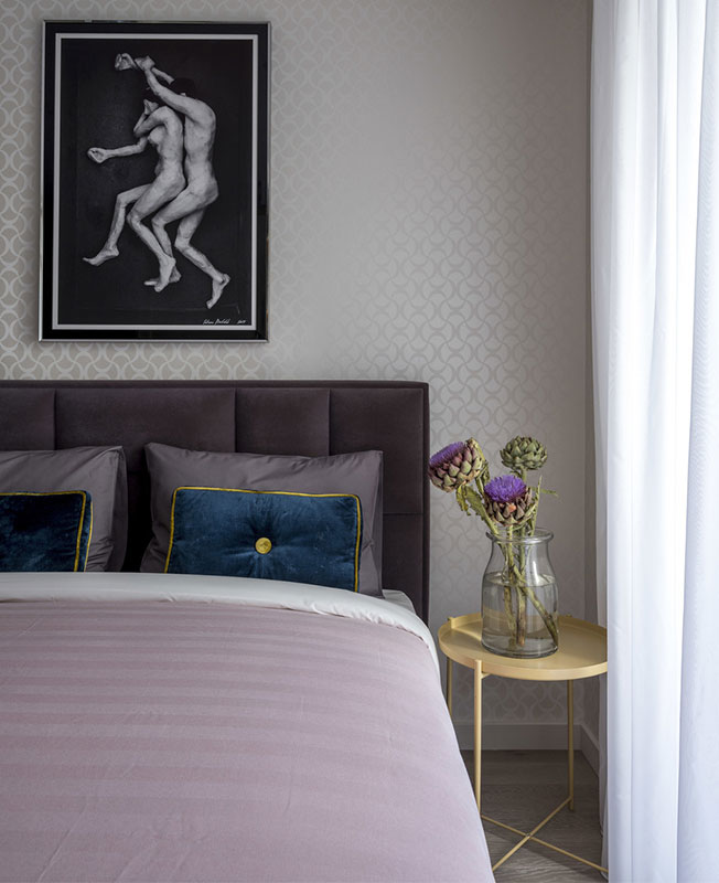 Квартира находится в типовом панельном доме 1990-го года. В пространство не было внесено никаких кардинальных изменений, дизайнер лишь убрал дверь на кухню, чтобы объединить ее с зоной прихожей и коридором.