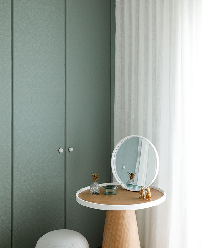 В интерьере собраны предметы хороших, выверенных форм. Как и во всех своих своих проектах, Агнес добавила несколько знаковых и винтажных вещей. Здесь это стулья Verpan — классика дизайна, модель 430, которую спроектировал Вернер Пантон в 1967 году. А также тальянское зеркало с подсветкой 1950-х.