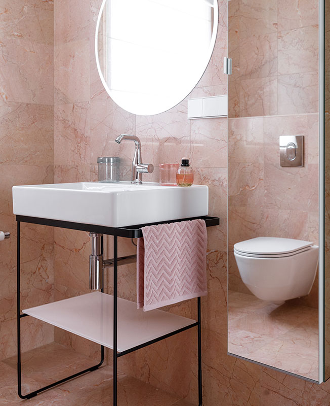Поскольку квартира была куплена с отделкой, дизайнер ограничилась косметическим ремонтом, как говорит Агнес Рудзите, сделала make up, сохранив как есть основу: оставила существующую паркетную доску и двери, не трогала объемы помещений. Самое серьезное преобразование — замена оснащения санузлов.