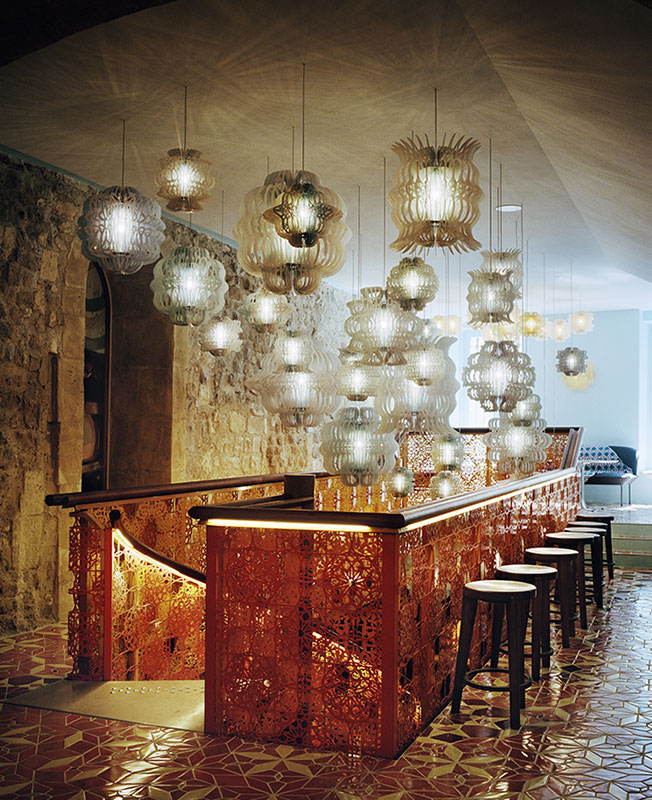 Для L'Arlatan, помимо общего оформления, Хорхе Пардо спроектировал предметы декора, мебель и светильники. А великолепный знаток искусства и дизайна, Майя Хоффман, добавила вещи из своих коллекций.