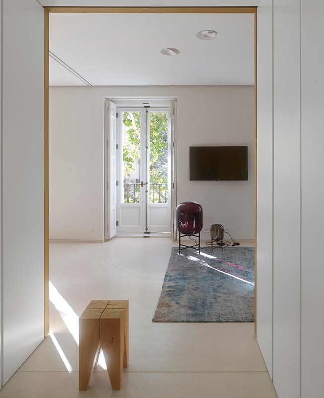 Маркус Лассан и Соня Симон Матео, u_labprojekte, превратили пространство бывшей школы в Мадриде в современное жилье площадью с раздвижными перегородками и удобным разделением на зоны.