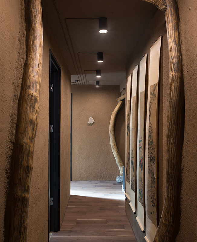 В пространстве доминируют натуральные материалы: стены отделаны глиной в старинной украинской технике, деревянные потолочные балки выставлены на показ, как в деревенских домах.