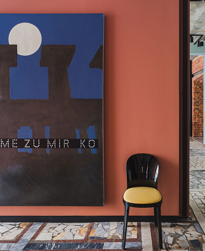 Декоративным акцентом в интерьере стало современное искусство — для шоу-рума были выбраны картины петербургского художника Анастасии Забаровской из серии «Максимы», а также работа художника Эдуарда Яшина из серии «Охраняется государством».