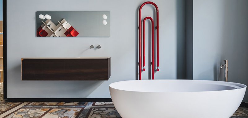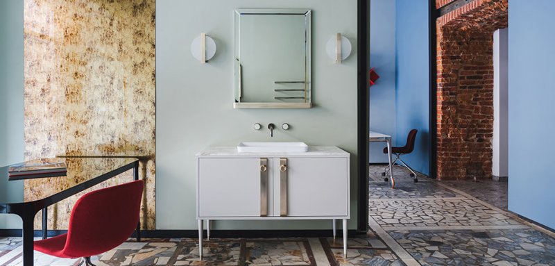 В Санкт-Петербурге открылось необычное пространство AND28. Здесь современная сантехника, разнообразная мебель для ванных комнат, сантехника и сопутствующие аксессуары соседствуют с современным искусством и предметами авторского дизайна. Нестандартный для России проект сделали управляющий партнер Андрей Пегов и дизайнер Андрей Ююкин. AND в названии салона подразумевает идею объединения разнородных элементов в одном пространстве, а 28 — это номер дома, где расположен шоу-рум. «Раньше в этом доме располагался обувной магазин, от которого нам и досталось помещение — бесхитростное и прямоугольное, абсолютно нефункциональное и неинтересное, — рассказывает о проекте Андрей Пегов. — С одной стороны, мы хотели полностью переиграть пространство, но с другой — нам необходимо было придерживаться определенной концепции по экспозиции наших брендов». Авторы хотели создать магазин в духе художественной галереи. Атмосферу арт-пространства помогли передать мобильные перегородки. Каждая экспозиция находится в отдельной комнате, но также легко превращается в единое помещение. «Если говорить, что любой интерьер – это отпечаток времени, то AND28 — это отпечаток 2018 года и работы с цветом», — комментирует дизайнер Андрей Ююкин. Главным источником вдохновения послужила «Архитектурная полихромия» Ле Корбюзье. Цветовую систему из 63 оттенков архитектор разрабатывал на протяжении почти 30 лет. Ле Корбюзье считал, что цвет в корне меняет пространство, физиологически и психологически воздействует на человека. «В нашем проекте цвет не менее важен, чем конструкция и форма». Вторым важным элементом салона стал пол. «Интересно, что когда мы выбирали отделку, терраццо еще не было столь популярно. А когда заканчивали проект, то уже видели его на ведущих стендах Salone del Mobile в Милане», — комментирует Андрей Ююкин. Декоративным акцентом в интерьере стало современное искусство — для шоу-рума были выбраны картины петербургского художника Анастасии Забаровской из серии «Максимы», а также работа художника Эдуарда Яшина из серии «Охраняется государством».