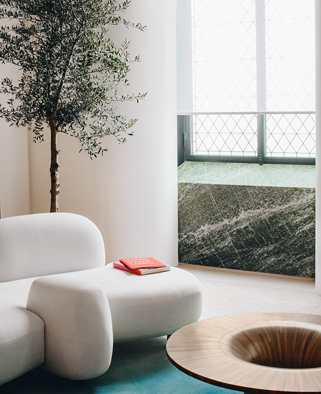 «Корпус знаков — это универсальный язык: первые идеограммы цивилизации. Они не принадлежат к определенной эпохе или месту, они принадлежат человечеству, — говорит дизайнер. — Мне нравится, что моя мебель не диктует, как сидеть. Эти диваны дают вам полную свободу: общение, сон, дебаты или размышления, ноги на земле или ноги в воздухе — есть так много способов провести время в гостиной...»