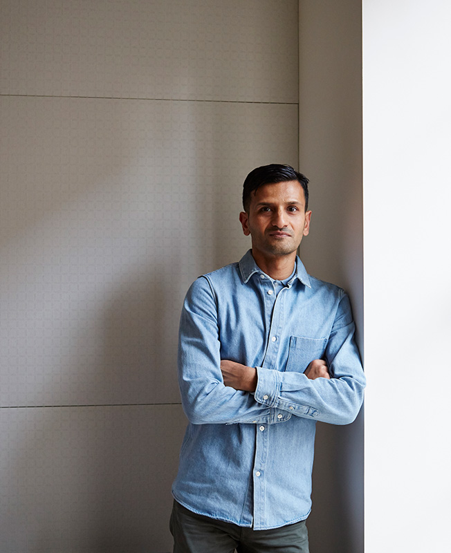 Дизайнер Аамир Кхандвала оформил интерьер для семьи из четырех человек в кондоминиуме в Вест-Виллидже. Чтобы пространство получилось сбалансированным и элегантным, дизайнер использовал нейтральную палитру и рафинированные детали, соединил выполненные на заказ предметы с классикой дизайна XX века. Общественная зона в квартире объединенная. Центральный элемент гостиной — изогнутый диван, созданный по эскизам автора проекта. Источником вдохновения послужила коллекция мягкой мебели Polar Bear (1947) французского дизайнера Жана Ройера. Пара табуретов mid-century modern с геометричными ножками — работа дизайнера Джо Понти. Округлый белый пуф — модель Qi по дизайну Роберта Куо. Стеллаж из древесины ореха и бронзы «обернут» вокруг массивной колонны, маскируя ее и визуально отделяя обеденную зону. В столовой стены и потолок отделаны шелковистой венецианской штукатуркой. Круглый стол изготовлен специально для этого проекта из кориана. Вокруг него — стулья 1950-х годов из махагони, спроектированные архитектором Освальдо Борсани. Над столом винтажная лампа Франко Альбини 1960-х годов: за счет подвижной конструкции ее положение можно регулировать. В спальнях минимум мебели и преобладающий белый цвет. Нескучным пространство делают детали: например, масштабные мягкие изголовья, обитые светлой кожей с мелким фактурным рисунком, отделанные мрамором тумбы, латунные акценты, детали синего цвета. Детскую делят между собой брат и сестра — это одна из причин выбора такой палитры: дизайнер хотел создать интерьер гендерно нейтральным, чтобы обоим детям было комфортно. Аамир Кхандвала родился на юге Пакистана, в Карачи. Говорит, что дизайнером хотел быть с детства. Получать соответствующее образование отправился в Нью-Йорк, где закончил Институт технологии моды (FIT). Но главной его «школой» стала работа в бюро декоратора-аристократа Робера Кутюрье: Кхандвала почти 15 лет возглавлял отдел декора, разрабатывая многомиллионные проекты роскошных резиденций по всему миру. Дизйанер Аамир Кхандвала. В 2015 году, с благословения наставника, открыл на Манхэттене собственное дизайн-бюро. Аамир Кхандвала говорит, что Кутюрье научил его балансу, грамотному использованию нейтральной палитры и азам модного микса элементов разных стилей и культур. От работ наставника его отличает более деликатный подход. «Стиль Робера зачастую можно обозначить как «всё больше и больше», — говорит дизайнер. — Мой же очень «отредактирован» — мне нравится, когда всего немного меньше».