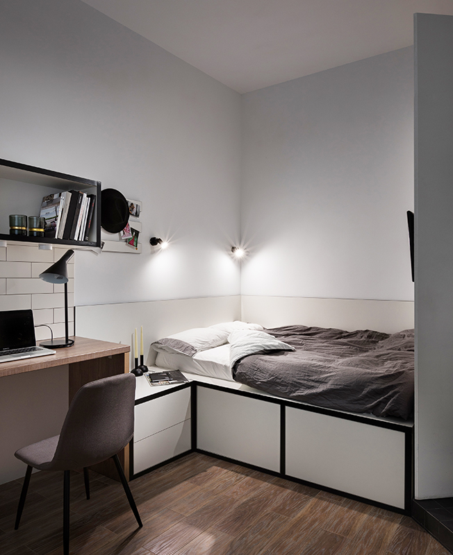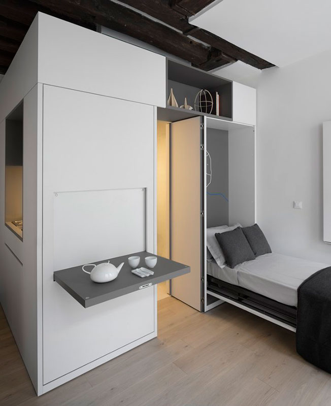 Cоздать многофункциональное пространство Энрико Боне и Элизе Нобиле, дизайнерам EDB Studio, поручили всего на 16 кв. метрах.