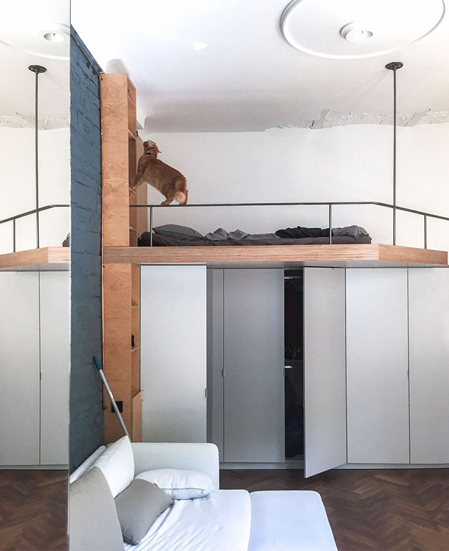 Московская студия KDVA Architects, квартира 33 кв. м в Находке. Куб из фанеры формирует спальное место для двоих и содержит вместительные скрытые объемы для хранения вещей. На 32,5 кв. метрах Грэхем Хилл разместил две комнаты с мобильной и модульной мебелью. В результате пространство может легко трансформироваться под столовую, гостиную, 2 спальни и кабинет. Одна из спален находится за занавеской. Киевская студия Fateeva Design и дизайнер Елена Фатеева превратила 17,3 кв. метра в комфортную студенческую квартиру, где удобно отдыхать и учиться. 18 кв. метров в Буэнос-Айресе оказались для бюро IR arquitectura огромным полем для претворения в жизнь идей и экспериментов с площадью. Спальня и рабочий уголок расположены на подиуме. Квартира (35 кв. м)досталась львовским архитекторам RE design bureau, как говорится, «с наследством». Старый дом — с высокими потолками, поэтому спальное место создали на антресоли прямо в гостиной, а под ней сделали ряд шкафов. Архитекторы бюро М3 Architects спроектировали интерьер маленькой квартиры площадью 35 кв. метров: красивый, чистый и функциональный. Двуспальная кровать, обращенная к окну, находится за прозрачной перегородкой, хранение находится в шкафу-гардеробе, который служит изголовьем кровати. В основании кровати есть удобные ящики. Cоздать многофункциональное пространство Энрико Боне и Элизе Нобиле, дизайнерам EDB Studio, поручили всего на 16 кв. метрах. INT2architecture: квартира-студия для сдачи в аренду. Небольшое пространство планировали специально для сдачи в аренду. Вложения в отделку (как в материалы, так и в работы) были минимальными. Испанская студия Plutarco спроектировала студенческое общежитие в Мадриде. Каждая мини-комната в нем — со своим характером. Шкафы встроены по периметру. Полноценная спальня в маленькой квартире — обычно такой вариант удается немногим. Для компактных помещений часто выбирают диван-кровать. Однако, многим он покажется не столь комфортным и хлопотным решением. Сегодня дизайнеры предлагают много идей как оставить полноценное спальное место для двоих и сохранить при этом целостность помещения. На помощь приходят многофункциональная мебель — маст-хэв для небольшой площади, кровати с подиумами и на антреслоях, спрятанные в шкаф или скрывающиеся за красивыми занавесками. Ирина Маркман и Екатерина Нечаева, BHD-Studio, оформили в Москве квартиру площадью 40 кв. м. Кровать, панели вокруг ТВ, стеллаж изготовлены на заказ по чертежам дизайнеров. Кресло было найдено на блошином рынке в Праге и переобито в современный текстиль. Мария Пилипенко спроектировала квартиру в Санкт-Петербурге. На 27 кв. метров дизайнер не просто разместила все необходимые функции, но создала комфортное и стильное жилье. Batiik Studio: все, что нужно на 15 кв. метрах. Оригинальность этого проекта заключается в особой конструкции мебельного трансформера, который может быть превращен в кровать, диван и обеденный стол. Диван-кровать полностью убирается, освобождая место для столовой. Двухкомнатную квартиру площадью 55 кв. метров в сталинском доме архитектор Борис Денисюк превратил в комфортное жилье для молодого европейца. Спальня. Кровать, BoConcept. Цветовое решение помогает зрительно увеличить невысокий потолок. Однокомнатная квартира площадью 51 кв. метр расположена спроектирована Buro5. Вид на зону спальни из гостиной. Диван, столик Ikea, кровать, шкафы, полки из