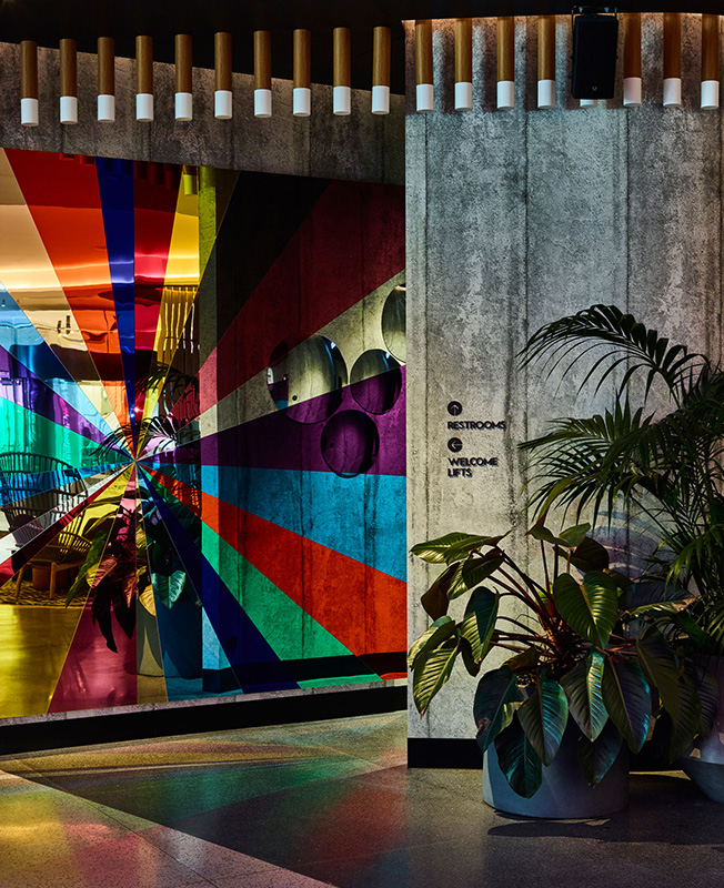 Выбранная палитра соединяет природные краски австралийского континента с взрывным цветом и выразительной графикой. Акценты расставили с помощью работ австралийских художников, среди которых Джон Николсон, Лукас Гроган и Реко Ренни.
