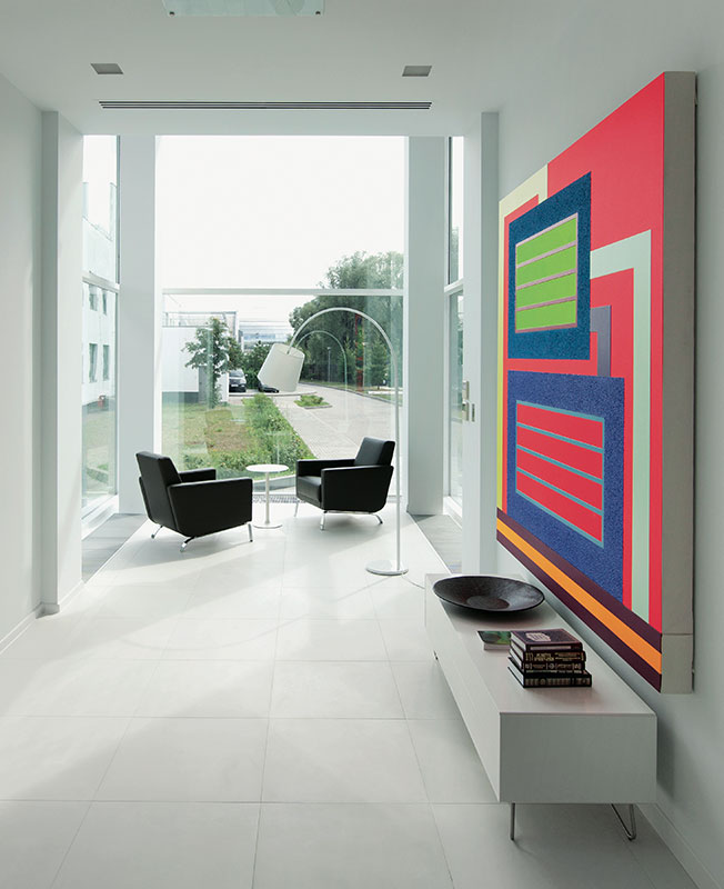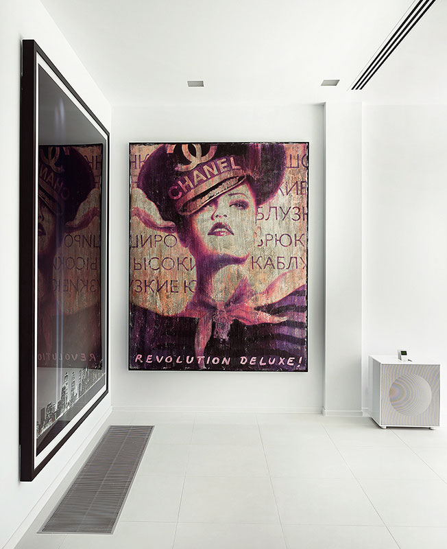 Умар Джабраилов, коллекционер и меценат, рассказал ИНТЕРЬЕР ДИЗАЙН о своем доме и отношениях с искусством. «Статьей дохода, рациональным вложением средств искусство для меня никогда не было. Искусство — это то, что радует, дает визуально-тактильный и культурный импульс. Я покупаю не имя, а произведение, которое меня торкает (хотя это может оказаться и знаковый художник, Дэмиен Херст например). Когда говорят, что вот на этой абстрактной работе «правильные пятна», а на той — «неправильные» — это чушь и абсурд, развод того, кто хочет быть разведенным. Восприятие индивидуально. Входная зона. Хозяин предпочитает работы крупного формата. Чтобы найти себя, человек проходит долгий путь. Путь познания, разочарований, сравнений, отрицания. Я вырос в СССР. Был комсомольцем, по убеждению вступил в партию. Мечтал о полетах в космос, хотел строить БАМ, восхищался летящими эстакадами и красавцами-мостами, которые возводили советские архитекторы. Я был устремлен в будущее. Но когда началась перестройка и открылись новые возможности — потерялся, забыл о том, что любил. В то время повсюду появился антиквариат, позолоченные рамы и старинная мебель казались такими красивыми! Люди с деньгами начали скупать их. И я тоже — сложно было не поддаться стадному чувству — стал собирать ампир и передвижников. Тогда, в девяностых, мы не были устремлены в будущее. К счастью, у меня сработала внутренняя планка. К тому же я много путешествовал, набирал визуальный опыт: Германия, Чехия, Франция. Мой мозг постоянно долбил: смотри, какой красивый особняк, какой замок, какое здание! Один из немногих цветных акцентов в доме — работа М. Веггенмана «Без названия» (2008). Алюминий, высокоглянцевые лаки. Экран домашнего кинотеатра 4,5 х 2, 5 м воспринимается как произведение концептуального искусства. Зимой 1999 года я вышел из своего набитого антиквариатом дома и понял: больше в него не вернусь. Находясь здесь, я не развиваюсь. Это даже не стагнация — регресс. К тому моменту мы сдали жилой комплекс «Груббер», дом 29 на Арбате. На самом верху была демонстрационная квартира. Я поселился в ней, сделал ремонт. Это была моя первая квартира в минимализме. «Первое произведение современного искусства я купил в 1999 году в Lisson Gallery. Это была работа Аниша Капура. Многие удивлялись: какая-то красная тарелка. А меня она торкнула!» Вскоре, в 1999-м, поехал на арт-форум в Берлин. С передвижников переключился на современное искусство (войти в него мне очень помогла Айдан Салахова). Имен я не знал, брал то, что нравится. Постепенно собралась огромная коллекция. В последнее время я увлекся фотографией. Считаю, это отдельная культура, очень интересная. «Не надо делать из дома музей. Достаточно нескольких работ, которые, тебя радуют». Уверен, что российские художники могут конкурировать с западными. Ведь все, что есть в мире современного, основывается на нашем: на русском авангарде и конструктивизме. Мы должны не только иконы вывозить, но и современное искусство. Нам не хватает институциализации. Каждый галерист и музейщик — князек в своей вотчине. Один одно делает, другой другое. Нужна единая концепция. Без национальной идеи, без государственной поддержки никогда никакое искусство не получит серьезной базы. Необходим полноценный, мирового уровня музей современного искусства. Возможно, аналогичный Триеннале