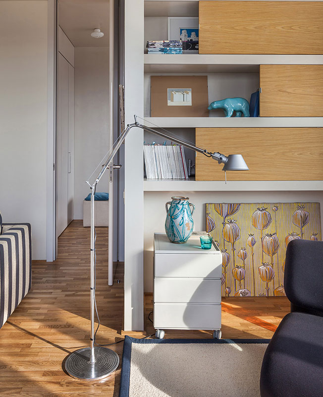 Паркет из древесины дуба и ясеня оъединяет всю квартиру, в том числе ванную и лоджию. Я стремлюсь к комфорту, а потому неудобный предмет не может быть для меня красивым. Для гостиной выбор пал на диван Magnum от Flexform по дизайну Антонио Читтерио.