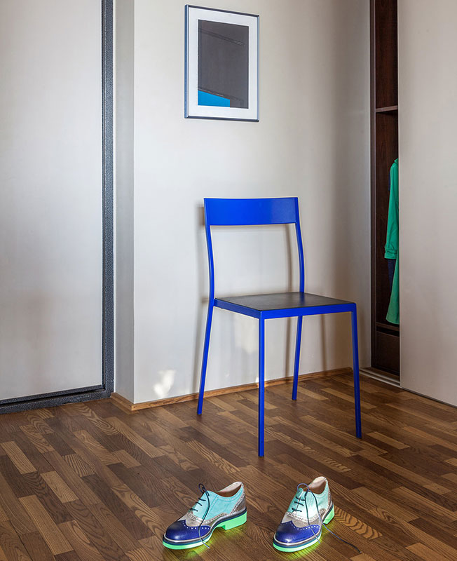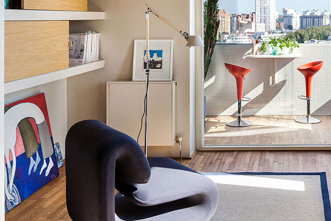 Акценты в интерьере расставлены с помощью искусства и предметов с историей. Пару черных кресел я привез из Бельгии для дома заказчиков, но одно из них поставил у себя в гостиной. Лоджия защищена от ветра закаленным стеклом без импостов. Панорамные окна обеспечивают максимум солнечного света и позволяют беспрепятственно любоваться панорамой Минска. Здесь приятно находиться в хорошую погоду — ухаживать за цветами, общаться, работать и пить вино.