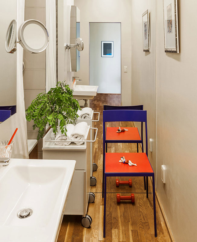 Я хотел наполнить пространство светом и раскрыть весь потенциал помещения с трехметровыми потолками. Все стены окрашены глянцевой краской нейтрального природного оттенка.