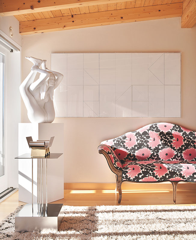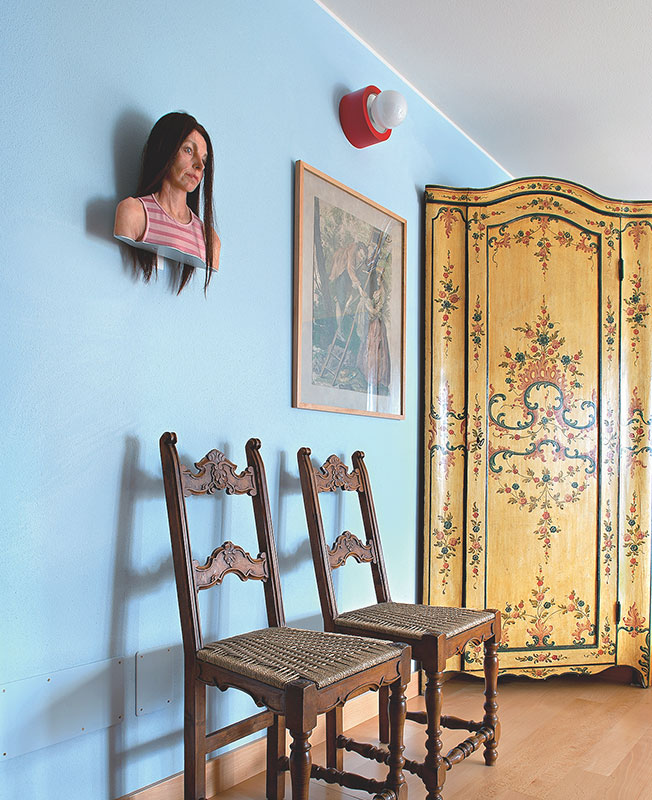 «Мой дом — история о старых воспоминаниях и новых страстях и желаниях», — говорит о своем жилище сентиментальный хозяин. Каждая комната содержит вещи, оставшиеся от предыдущих поколений: старинные реликвии, которые эффектно cмешиваются с современным искусством и дизайном. На стене — галантные сцены XVIII века, под ними — расписные деревенские стульчики, а рядом новая любовь: Марк Куин или Энтони Вурм. Объединяющее начало — узнаваемый дизайн Соттсасса, причем немало вещей он спроектировал специально для дома. Здесь же предметы классиков — Алвара Аалто и Михаэля Тонета. Возможно, Соттсасс и свое место в истории видел рядом с ними?