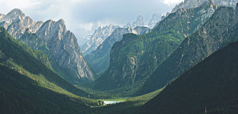 Вид с террасы на Доломитовые Альпы и долину Пустерия. Неподалеку хижина Густава Малера, где композитор написал «Песнь о земле» и Девятую симфонию.