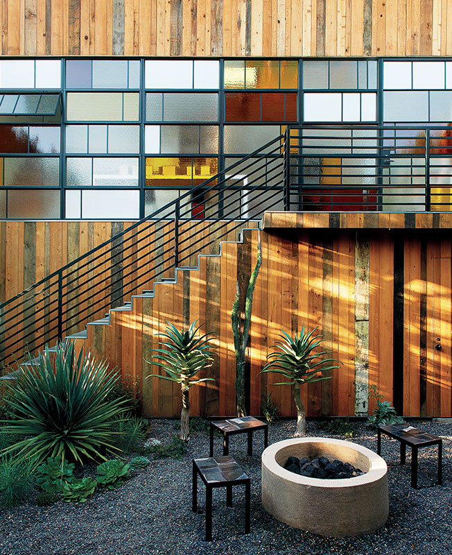 В облицовке частично использованы старые доски. Традиционный американский уголок для барбекю у Эйткена решен весьма артистично. Точно такую же цилиндрическую форму имеет здание музея Хиршхорна, на котором Дуг представил свой грандиозный видеоарт Song 1.