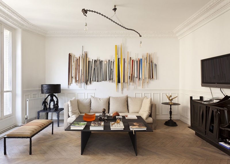 Одновременно Ломбрай обустроил себе жизнь в 10 минутах ходьбы от галереи, в Маре, квартале, облюбованном парижской богемой, в окружении модных бутиков и дизайнерских ателье. Его жена, актриса и продюсер Нитса Беншетрит полностью разделяет страсть мужа к экстравагантным предметам, а советчиками выступали парижские друзья, дизайнеры Роберт Стадлер и Винсен Дюбур. Ремонт был молниеносным: побелили стены, отшлифовали паркет. Пространство 140 кв. м стало и жильем, и полигоном для испытания новых предметов.