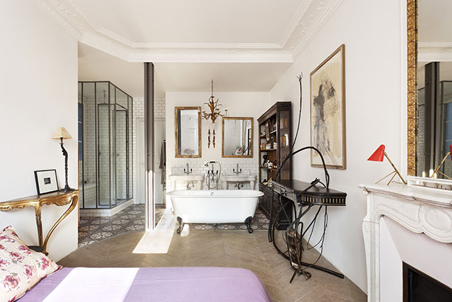 Жульен Ломбрай и Нитса Беншетрит Галерист и актриса обновили свою квартиру в центре Парижа в рекордный срок.