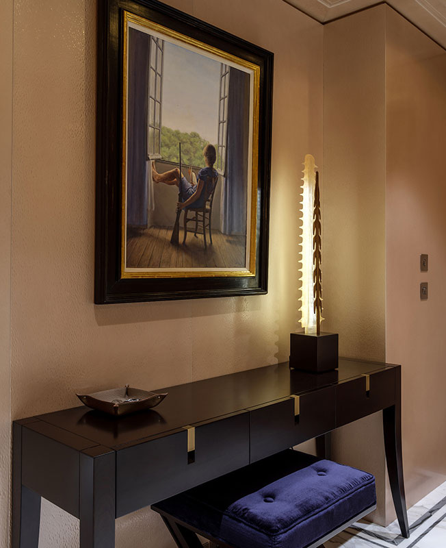Прихожая. Консоль и пуф, Philipp Selva. Настольный светильник, Baker.