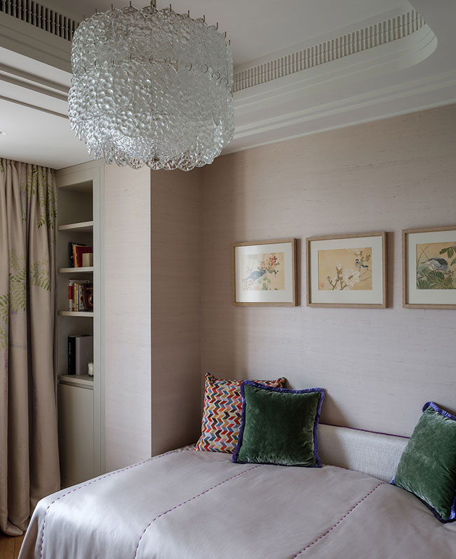 Люстра, Vaughan. Кровать, Altrenotti. На стене, японские гравюры.