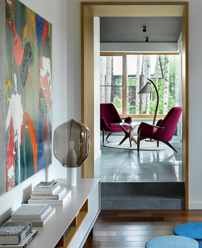 Прихожая. На консоли лампа Artemide. На стене винтажный светильник Venini. Екатерина Федорова оформила дом в подмосковном поселке. Cамым сложным в проекте для дизайнера оказался «космический» домашний кинотеатр. nonenonehttps://www.facebook.com/profile.php?id=1450643797www.fedorovaekaterina.com Когда семейная пара с четырехлетним ребенком пригласила Екатерину Федорову оформить дом, дизайнер не ожидала, что запрос будет таким удивительным и сложным: впервые ей встретились заказчики, настолько увлеченные космической тематикой. «У меня собралась огромная папка с материалами, присланными от клиента. До этого я не смотрела ни одну из частей «Звездных войн» — пришлось подробно изучить эту тему». Гостиная. Диван Cierre. Столики Baxter. Кресло, диз. Хорхе Залзупин, приобретено в салоне Krassky. Торшер Flou. Консоль Minotti. Ковер Kover Buro. На стене живопись Игоря Михайленко. Гостиная. Люстра Arteriors. Стол B