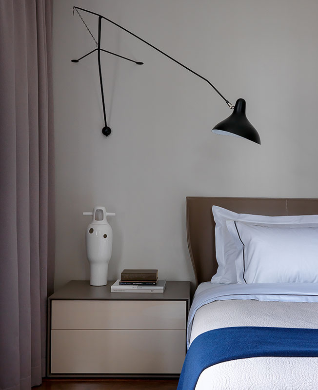 Главная спальня. Кровать и прикроватная тумаба B&B Italia. Настенный светильник Lampe Gras.