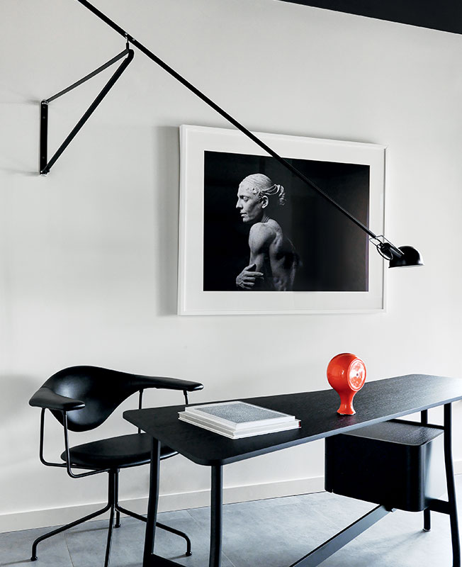 Кабинет хозяйки на втором этаже — одна из любимых комнат автора проекта. Стол дизайна Родольфо Дордони, Cassina. Светильник Паоло Риццатто, Flos. Стул, диз. Gamfratesi, Gubi. Ковер Nanimarquina. На стене фото Майкла Николса.